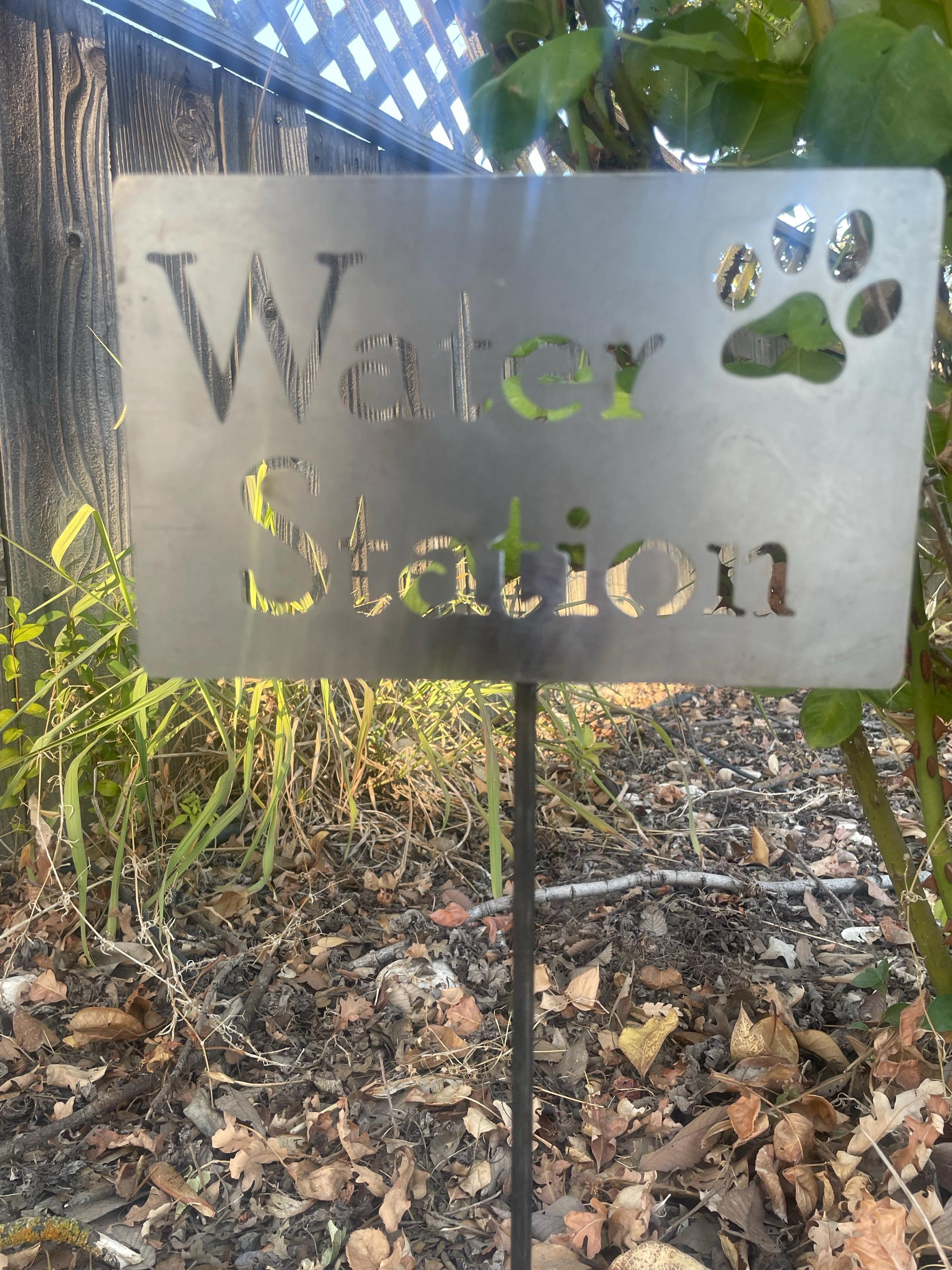 Water Station metal sign leads your guests to their own place to help themselves to water. You can choose from a small sign that fits into a flower pot next to the water bowl, up to an extra large sign that will not be missed!