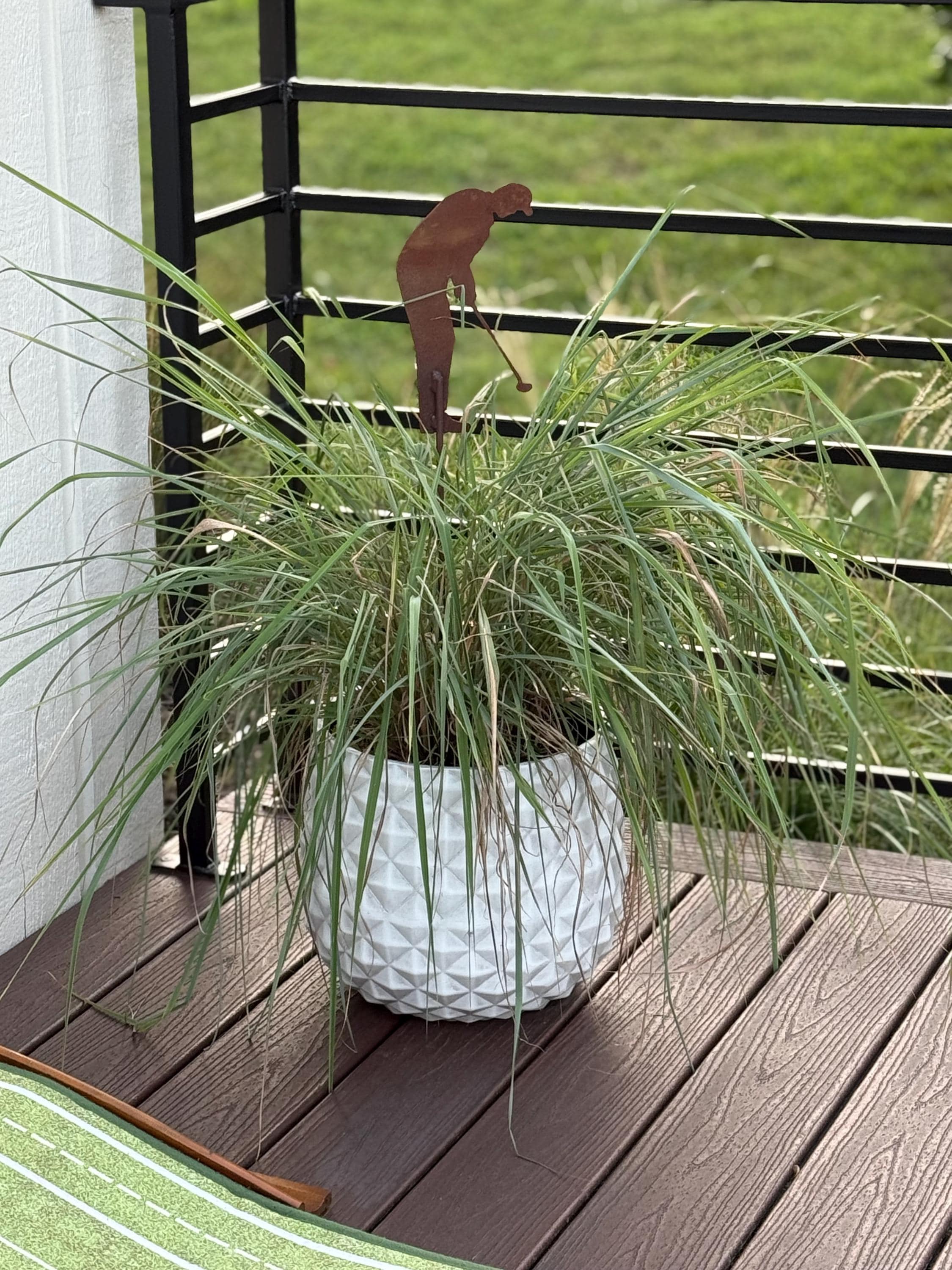 Great gift for my golf-loving husband! He staked it in a golf ball inspired outdoor pot of lemon grass on the deck by his 'putting station' while we relax in the evenings.